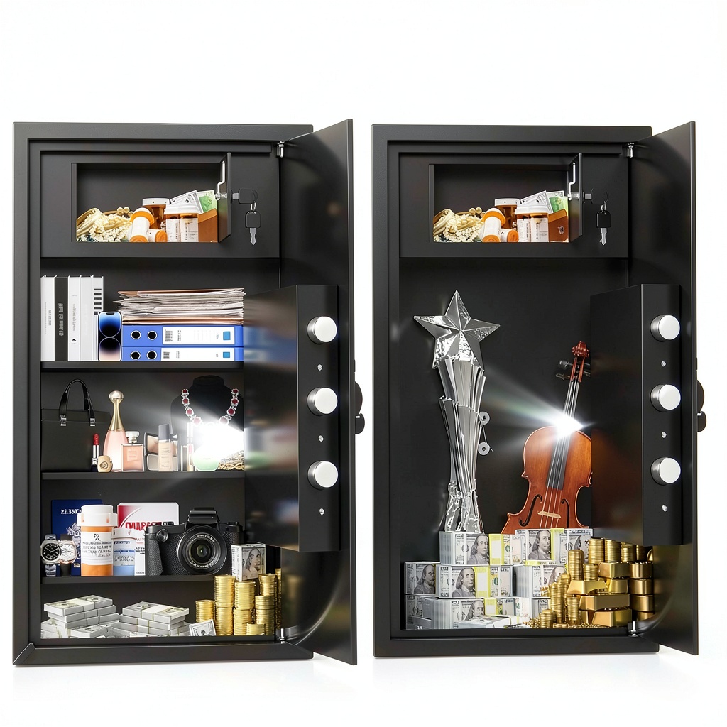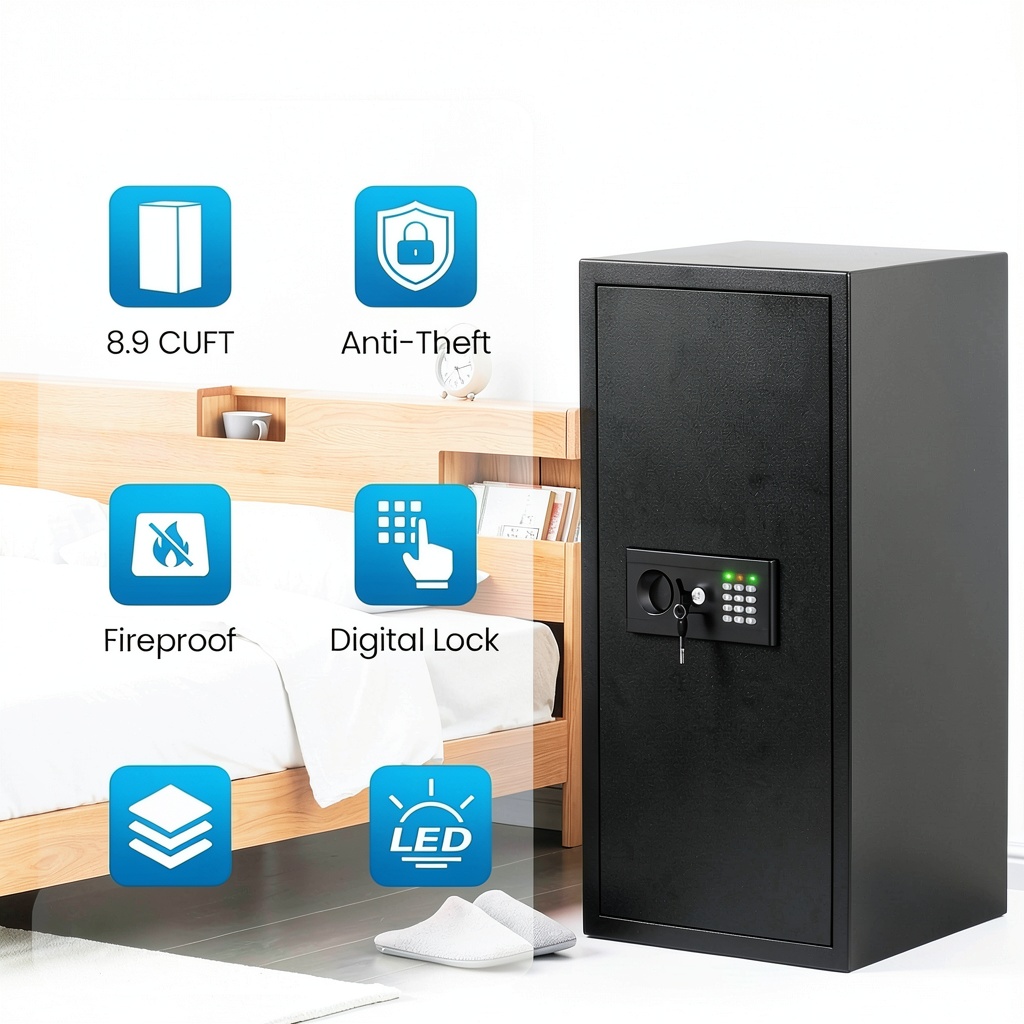 This safe is versatile for both home and office environments, perfect for storing passports, cash, jewelry, and digital devices securely. It suits households seeking to protect against theft or fire, as well as small businesses needing to secure sensitive records. The electronic lock and alarm system make it user-friendly for daily access while deterring unauthorized entry. Its compact dimensions allow for discreet placement in closets, under desks, or mounted on walls, catering to individuals and families prioritizing safety and organization.