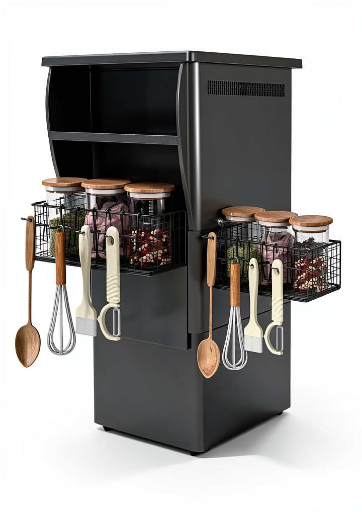 • Extra storage space with two side areas for tools and spices